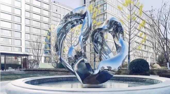 不锈钢水景艺术镜面雕塑,售楼处公园美陈景观摆件!金属雕塑点立水景之上,线条弯曲、延展…自由而写意,面与面交错,曲水流觞提升现代感,成为入口景观的点睛之笔。