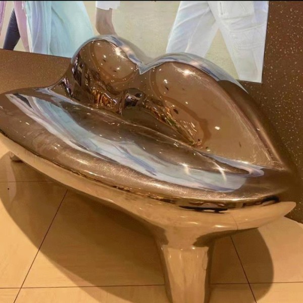 5、 较大型的造型简易的不锈钢雕塑也可不用焊接。可根据作品的形体比例直接做好钢筋骨架,用电钻在设计好的位置打眼,把不锈钢板用铆钉固定在骨架上可以了。这种方法要求骨架比例尺寸算得非常准确,接缝要对的很准,否则会产生差异,达不到预期的效果。