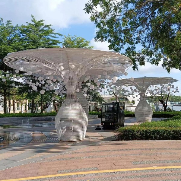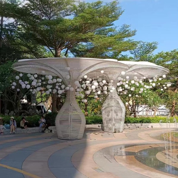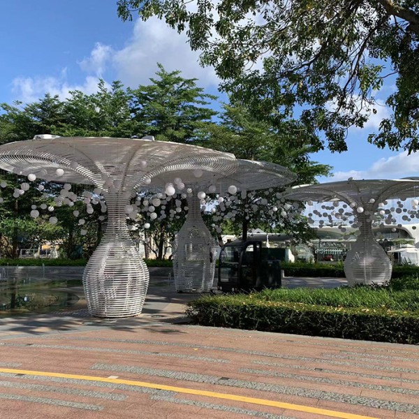 不锈钢创意景观廊架户外景观艺术雕塑摆件,不锈钢材质具有耐空气、蒸汽、水等弱腐蚀介质和酸、碱、盐等化学浸蚀性介质腐蚀的特性,因为不锈钢雕塑有诸多的优越性,所以很多的城市雕塑以不锈钢材质为材料。