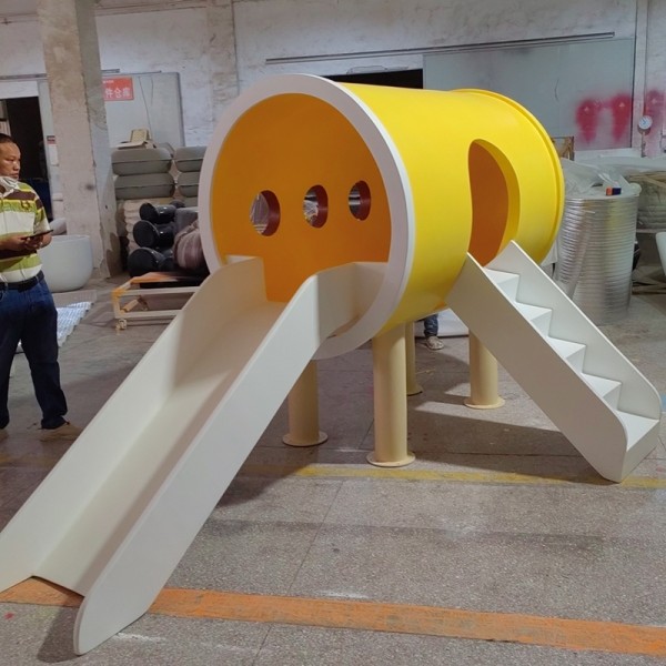 相对于普通滚塑成型、模具化生产的塑料材质滑梯,不锈钢滑梯具有可塑性强的优势。不锈钢滑梯造型多样,有螺旋S滑梯、弧形梯、交叉麻花状盘旋滑梯等多种造型,可以根据场地需求进行定制,也可以更好地满足滑梯设计师的奇幻想象,打造出更多新奇、好玩的新型滑梯。