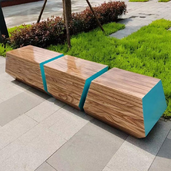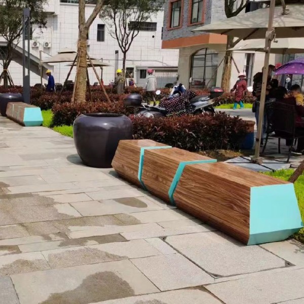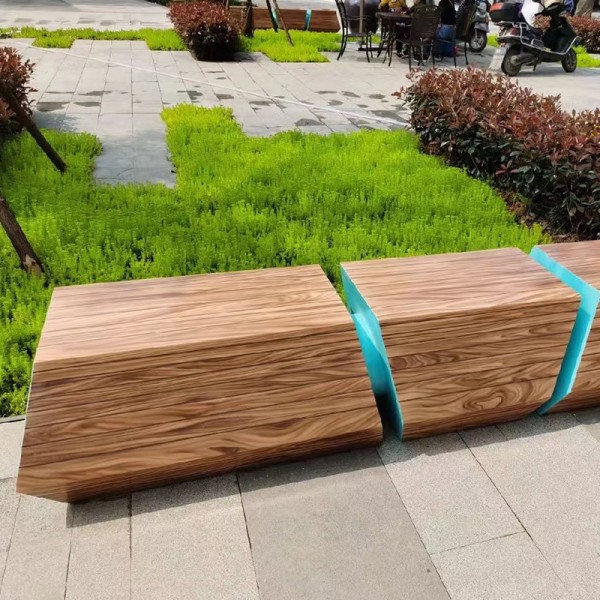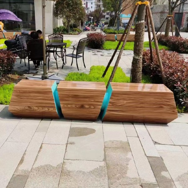 玻璃钢户外异形坐凳仿木纹景观广场座椅的优点: